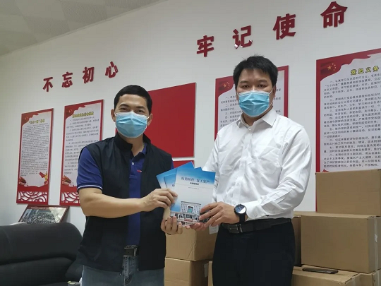 斗门区检察院林均明副检察长(左一)向斗门区工商业联合会赠送法律服务册